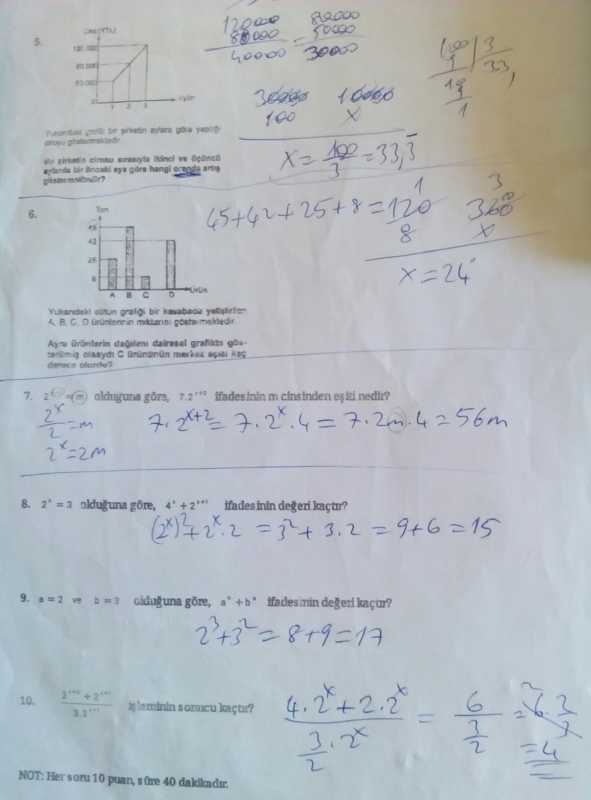 Grafik ve tabloların yorumlanması ünitesinden 5 soru, üstel fonksiyonlar ve uygulamaları ünitesinden 5 soru olmak üzere 10 sorudan oluşmaktadır. Sorulardan 2 tanesi grafikten fonksiyona ulaşmak, 2 tanesi fonksiyonun kuralından yararlanarak istenene ulaşmak,1tanesi değişim hızından,1tanesi artan azalan olup olmadığından,4 tanesi ise üstlü ifade ve denklemlerden oluşmaktadır.