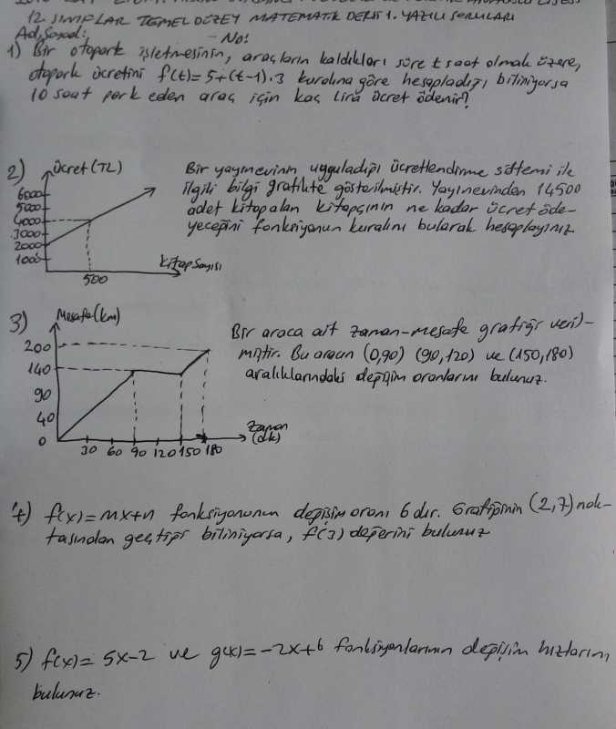 12.Sınıf Temel Düzey Matematik 1.Dönem 1.Yazılı Soruları