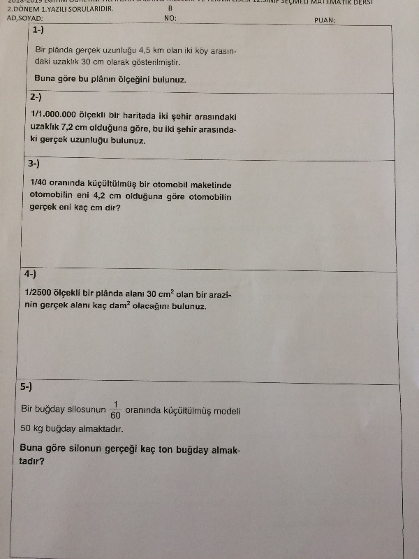 12.Sınıf 2.Dönem 1.Temel Düzey Matematik Yazılı Soruları, Cemal Hoca tarafından oluşturuldu