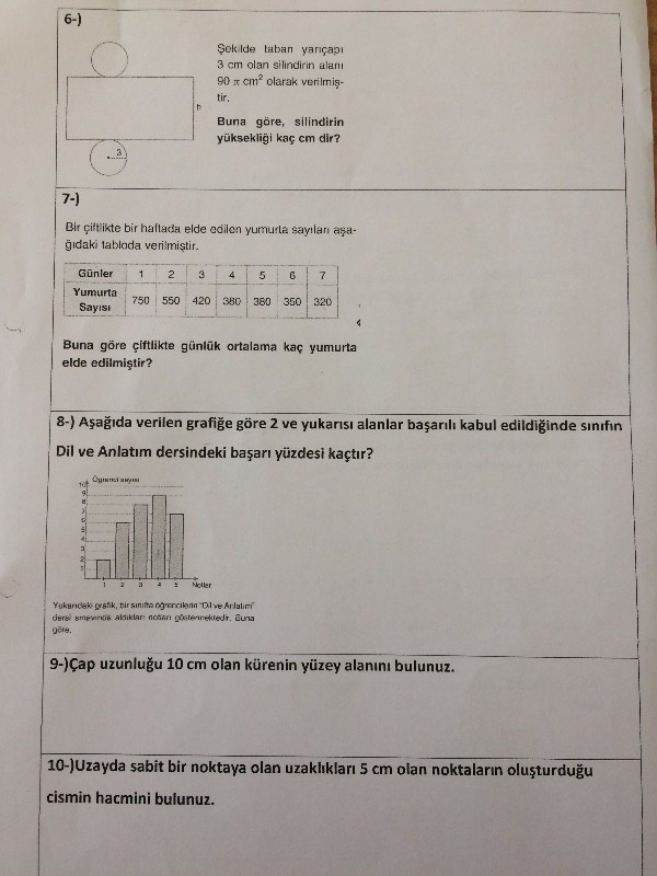 12.Sınıf 2.Dönem 1.Temel Düzey Matematik Yazılı Soruları