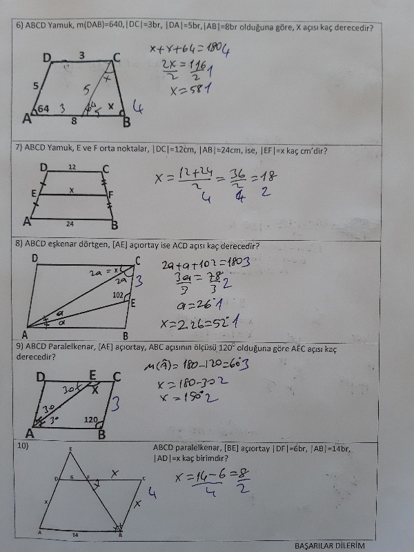 7. Paralelkenarda açı hesabı yapılması